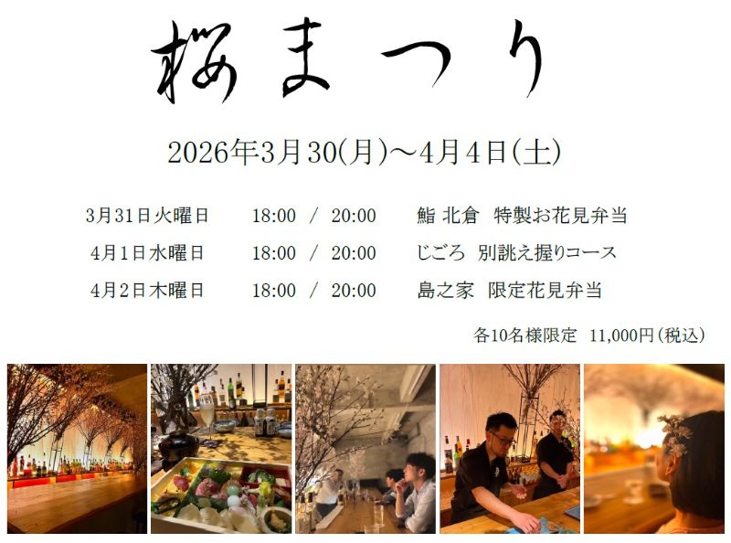 ティオペペ春の桜まつり 島之家による限定花見弁当を、指定時間にてお楽しみいただきます。 ※各10名様限定 ※詳細(予約方法・提供場所など)は主催者告知をご確認ください。
