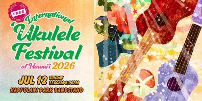 ハワイ・ホノルルで開催されるウクレレイベント 「International Ukulele Festival of Hawaii 2026」 ■日時 2026年7月12日(日) 11:00〜18:00 ※ハワイ時間 ■会場 カピオラニ リージョナル パーク ホノルル市(オアフ島) ■内容 ホノルル市のカピオラニ リージョナル パークで開催されるウクレレイベント。 出演:きいやま商店、ほか ■関連リンク イベントサイト https://ukulelepicnicinhawaii.org/wp/jp/