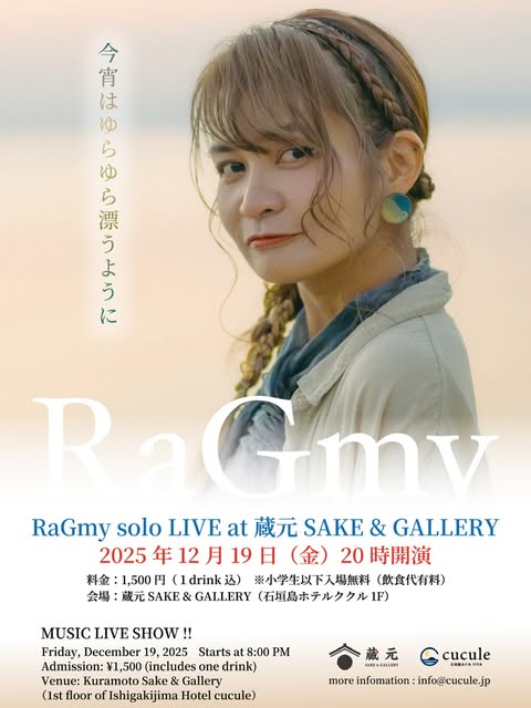 RaGmy solo LIVE 日時:2025年12月19日(金)20:00開演 料金:1,500円(1ドリンク付) ※小学生以下入場無料(飲食代別)