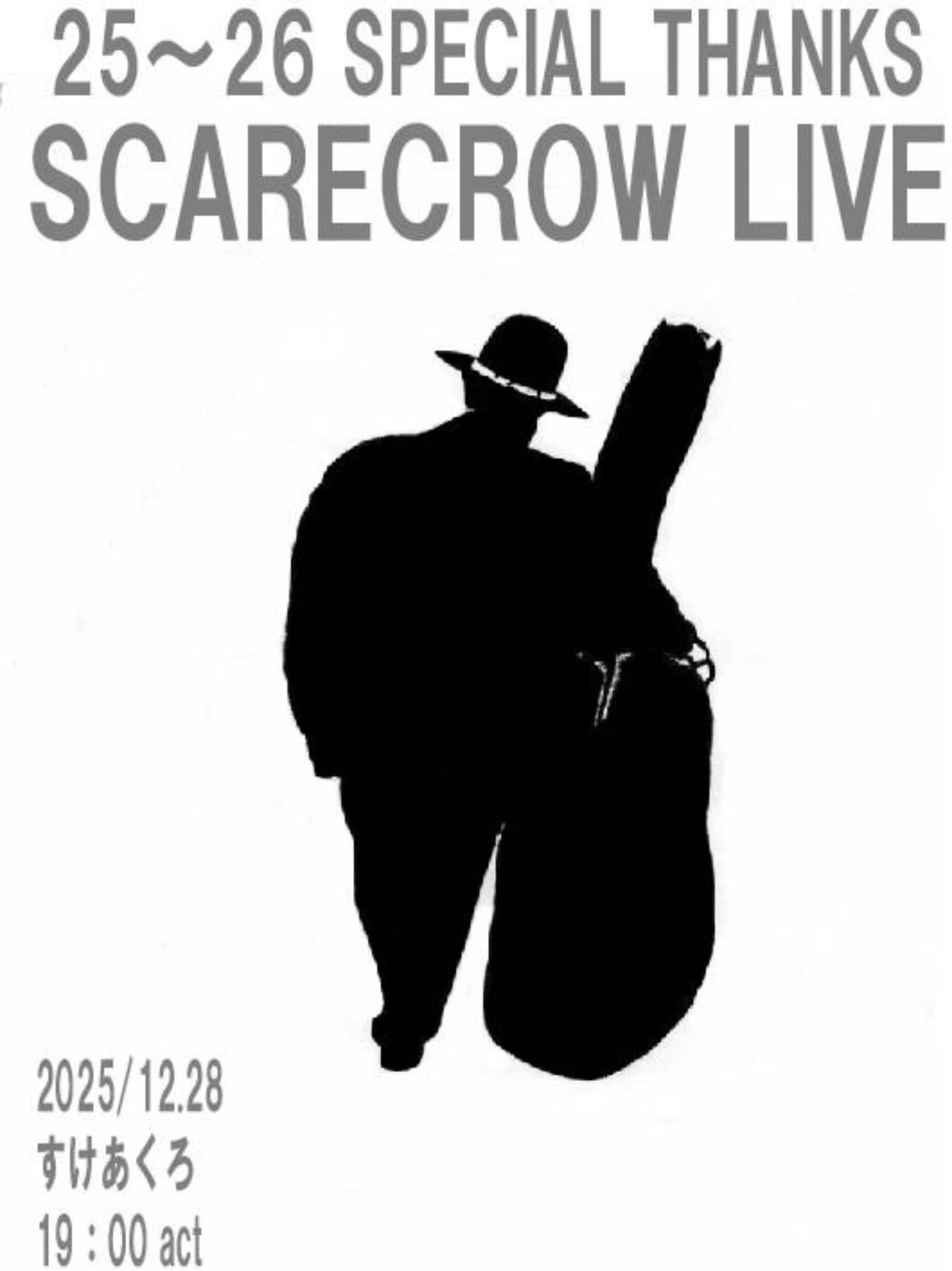 25〜26 SPECIAL THANKS SCARECROW LIVE 2025/12/28 19:00 act 会費 2000円(おでん、お酒含む)